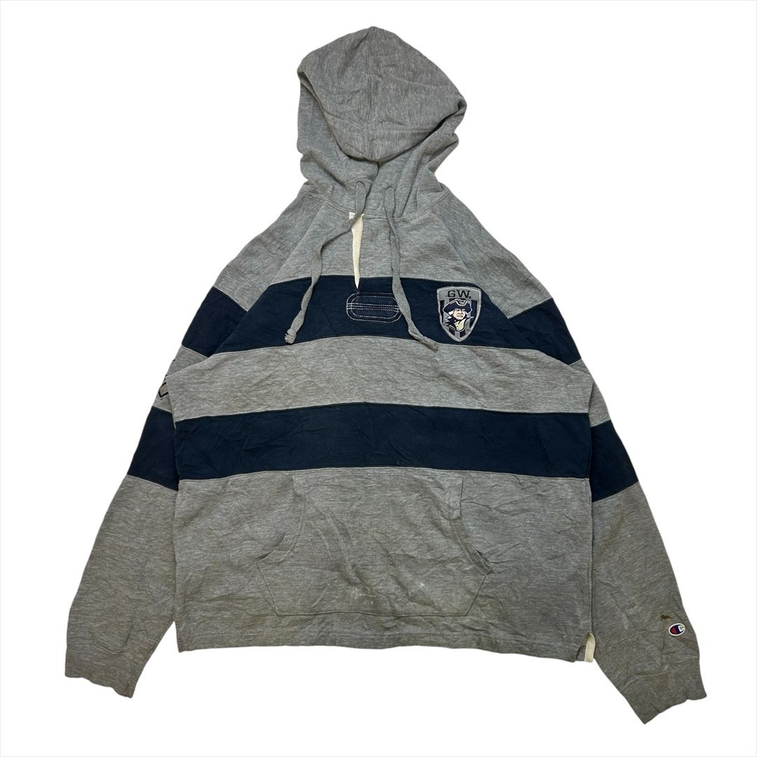 > チャンピオン パーカー グレー Champion 古着 メンズ L ボーダー ハーフ シティボーイ