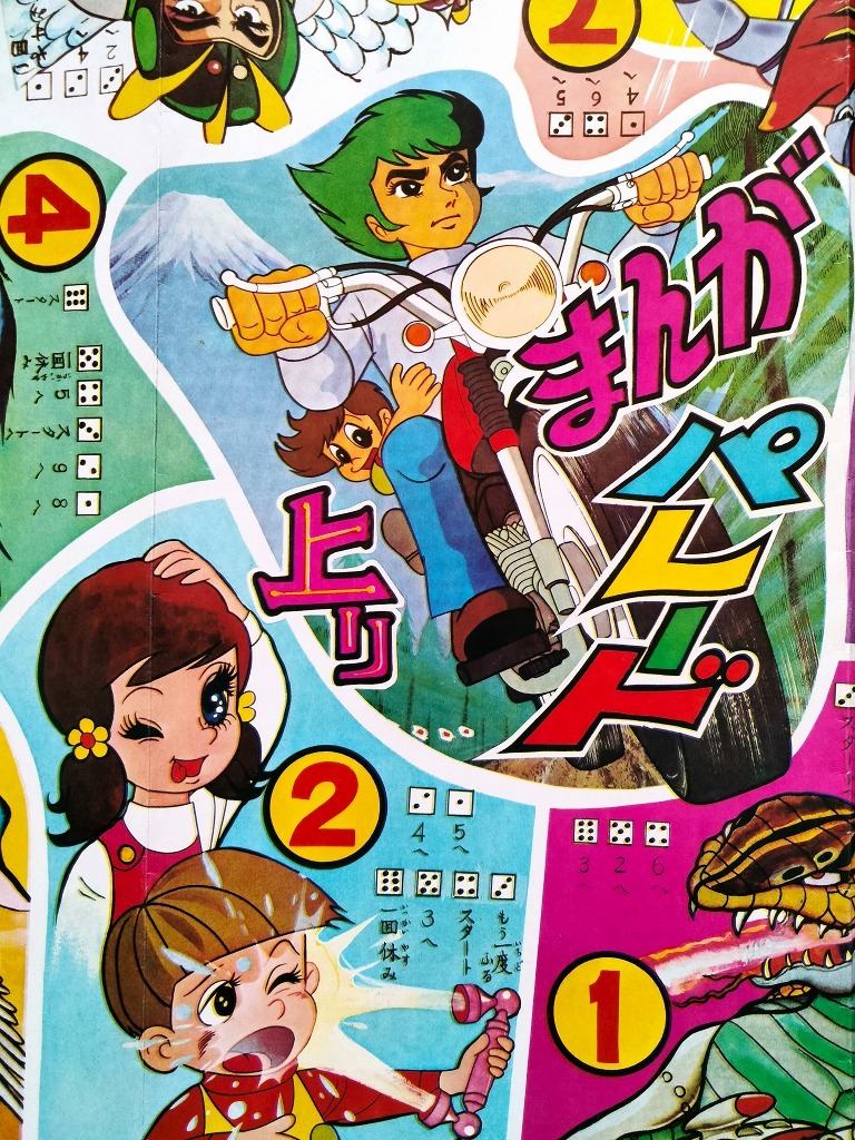 > '70s まんがパレード 大判 こどもゲーム 未使用 当時品 !! ☆ パチヒーロー 人気者 メルモちゃん ミクロイドS マジンガー キカイダー ??