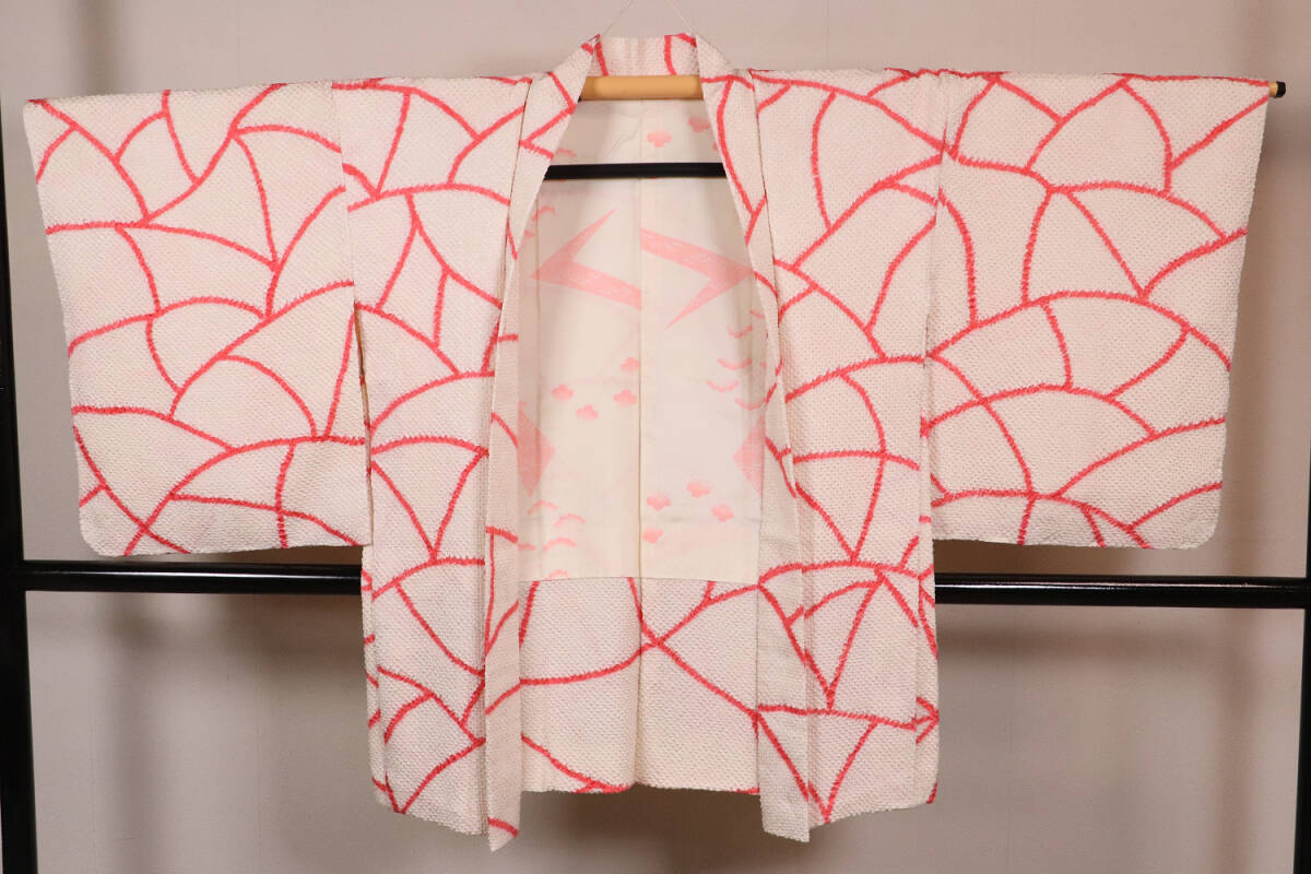 - 糸付き 総絞り 正絹 羽織 着物 白 オフホワイト 和装 和服 道中着【MA222】