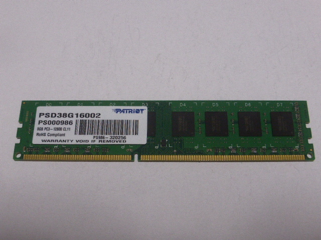 > メモリ デスクトップパソコン用 Patriot 1.5V DDR3-1600 PC3-12800 8GB 起動確認済みです