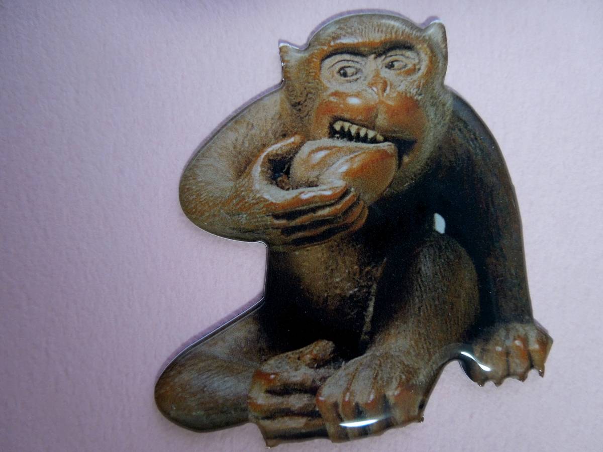 - 美術館グッズ マグネット 猿に絵馬蒔絵印籠・木彫 根付 猿 銘「正直」