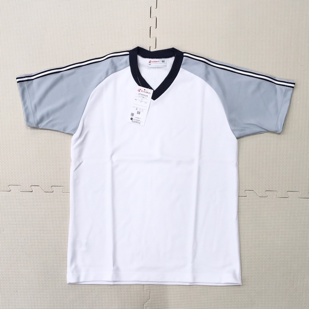 - K9(新品) 茨城県 愛宕中学校 半袖トレシャツ サイズ SS ◇閉校◇統合◇KANKO◇白×グレー◇体操着◇体操服◇運動着◇中学校◇高校◇学生