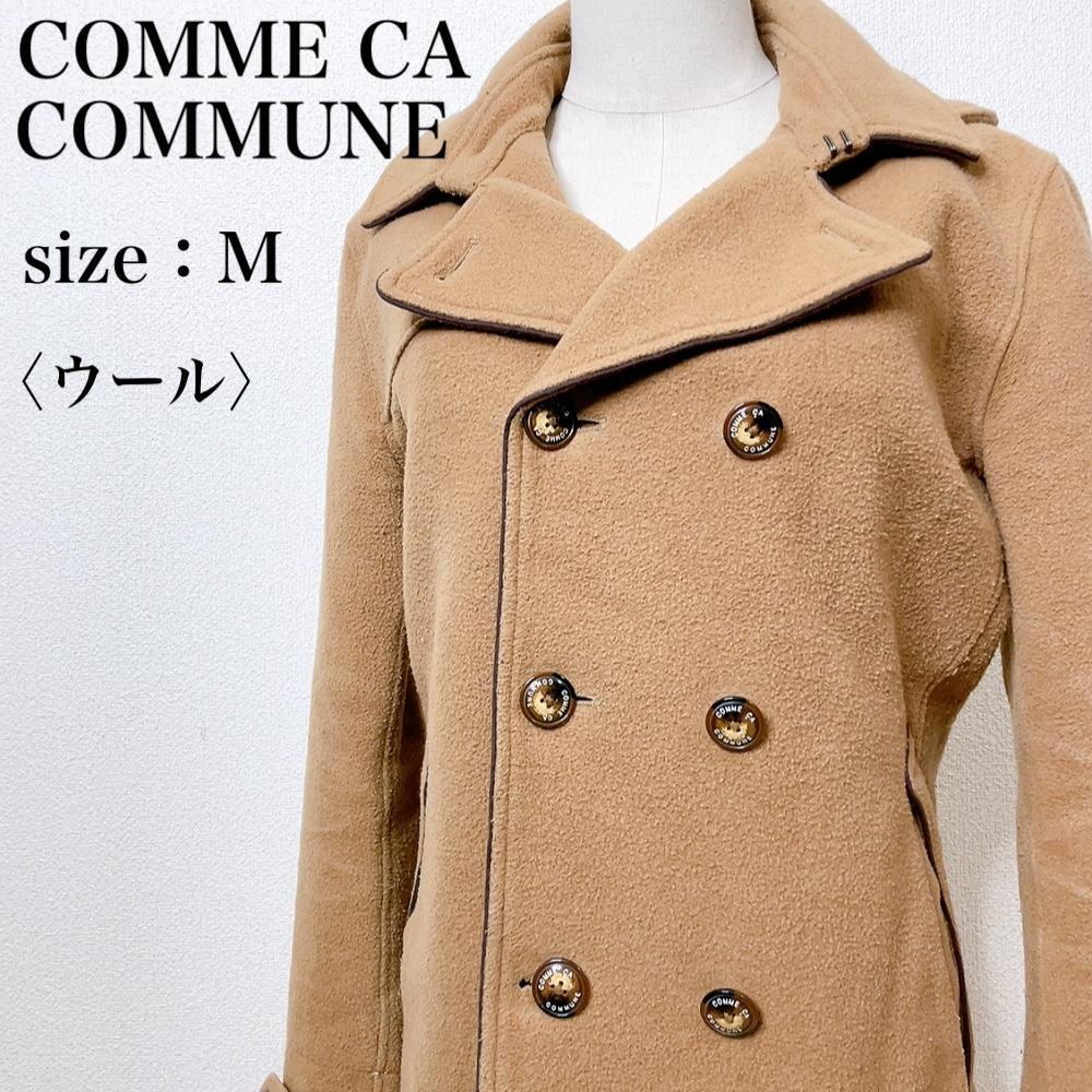 > COMME CA COMMUNE コムサコミューン カジュアル 上品 ダブルブレスト フード付き ショートPコート 羽織り ベージュ ウール や40