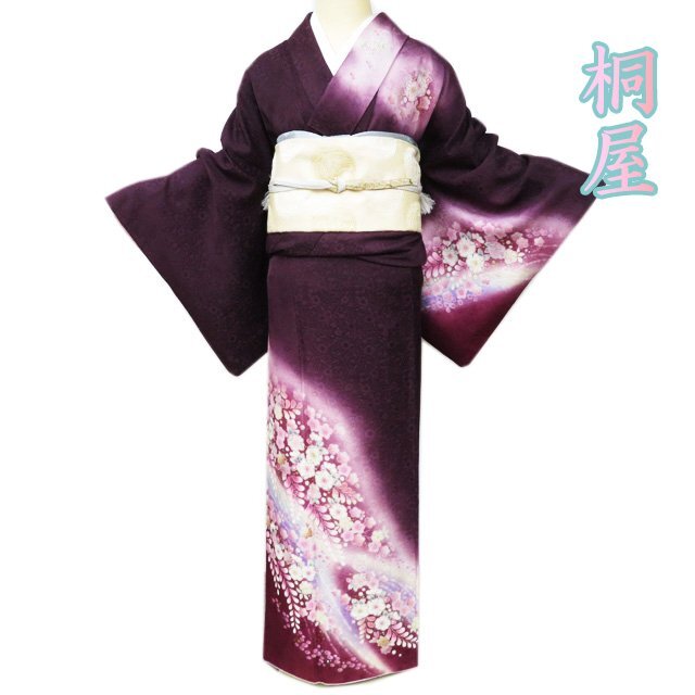 - 訪問着 着物 中古 袷 桐屋 翠山工房 辻が花 星座 地模様 桑の実色 多色 金銀 身丈171.5cm 裄71cm L トール きもの北條 A1108-6