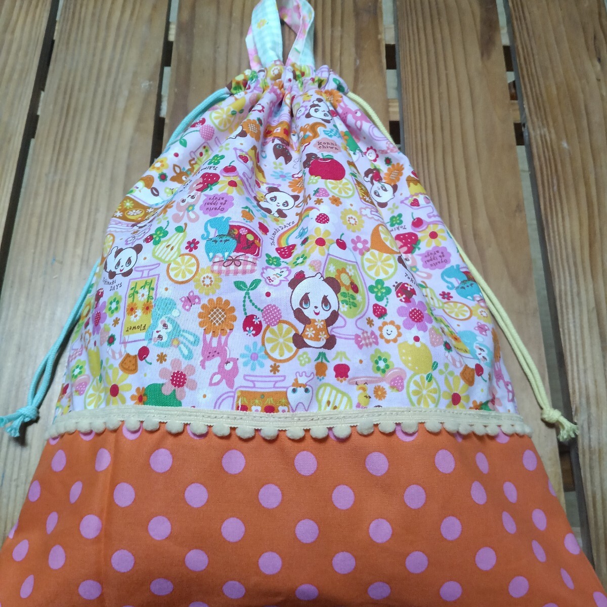- 入園入学準備 まつ毛ぱんだちゃん 体操服袋 お着替え袋 巾着袋 女の子 ゆめかわ ハンドメイド 体操着袋 体操服入れ パンダ