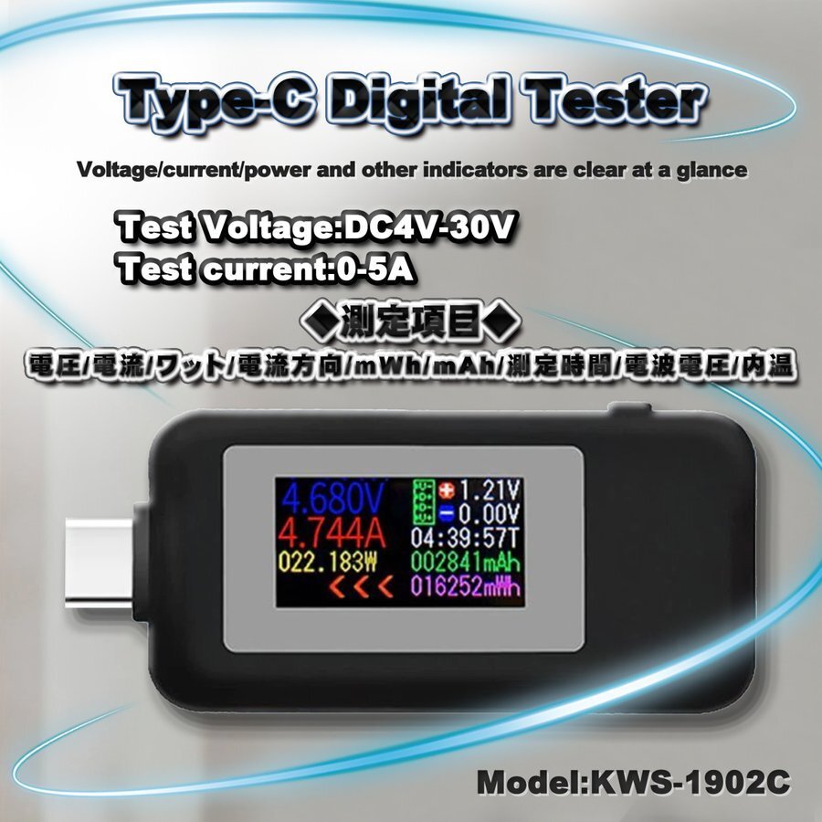 - Type-c テスター 0-5.1A USB 電流 電圧 テスター チェッカー 画面回転 多機能表示 4-30V DC表示 充電器検出器 KWS-1902C【ブラック】