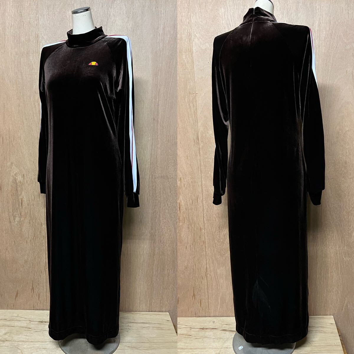 > 当時物 【ellesse】ベロアロングワンピース長袖 ドレス フォーマル カジュアル スポーティー 日本製 テニスブランド エレッセ