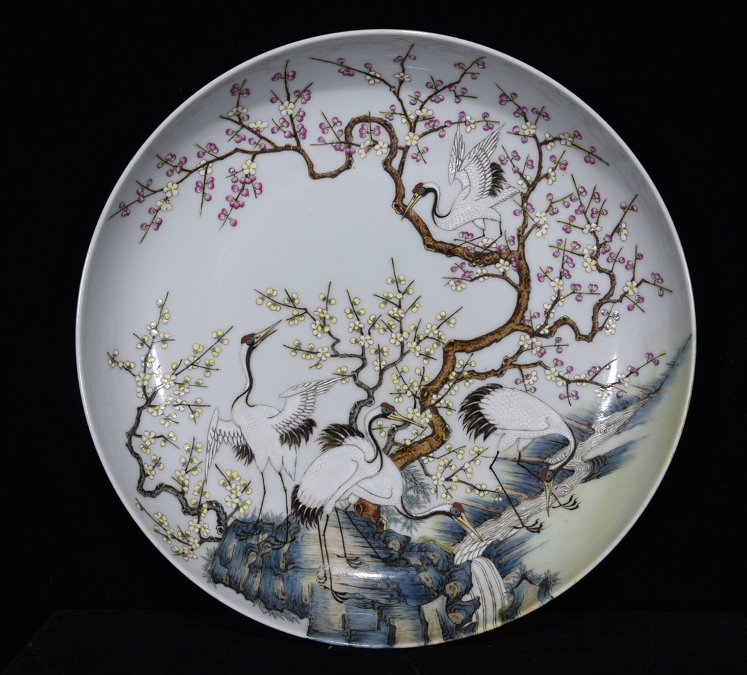 - ◆蔵出◆古美術 中国古玩 大清乾隆年製款 粉彩 六鶴同春図大盤 時代物 A06