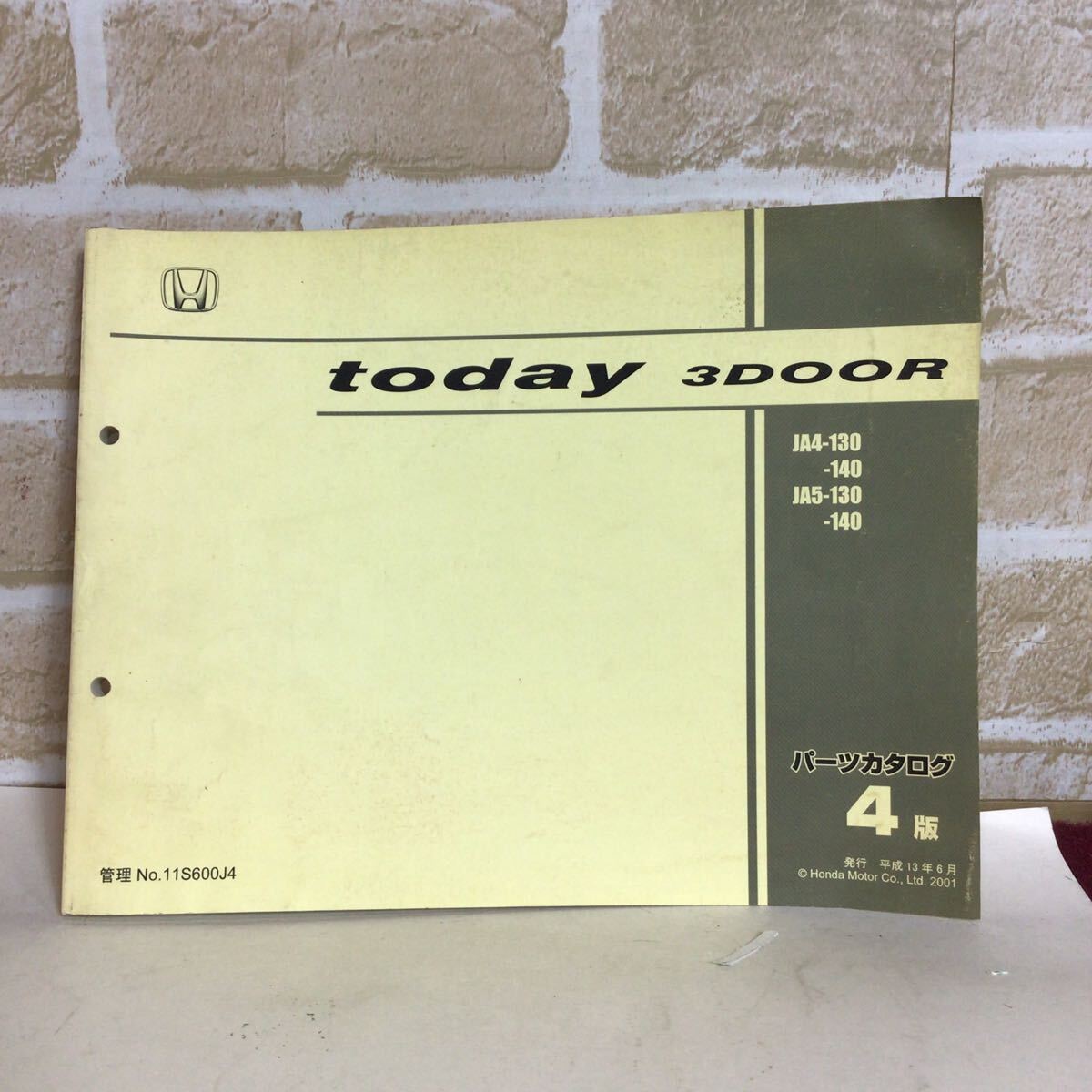 > ホンダ today 3DOOR 4版 平成13年6月発行 車検外装パーツカタログ 全補給部品イラスト掲載版 定期点検 主要整備カタログ 中古!