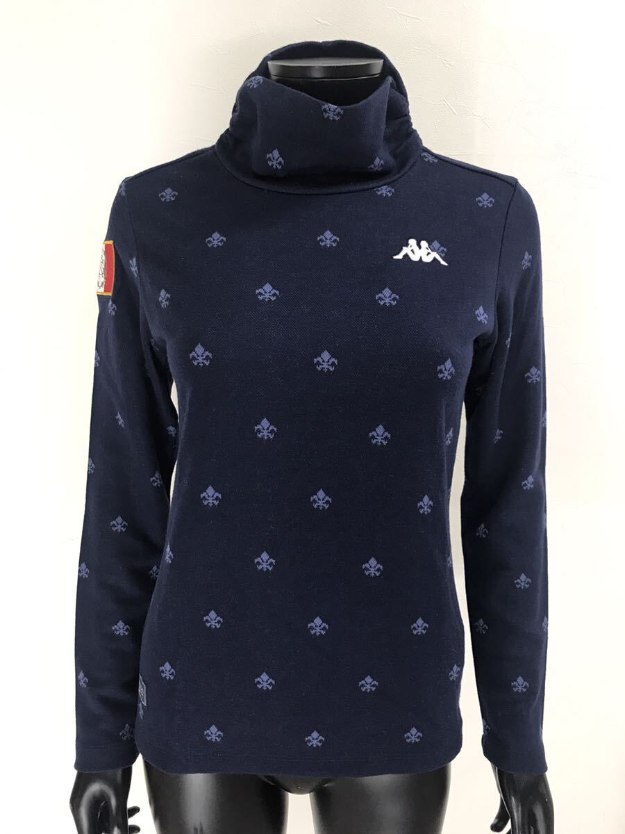> 【USED】Kappa カッパ アクリル ハイネック 長袖 シャツ ロゴ刺繍 ネイビー 紺 レディース L ゴルフウェア