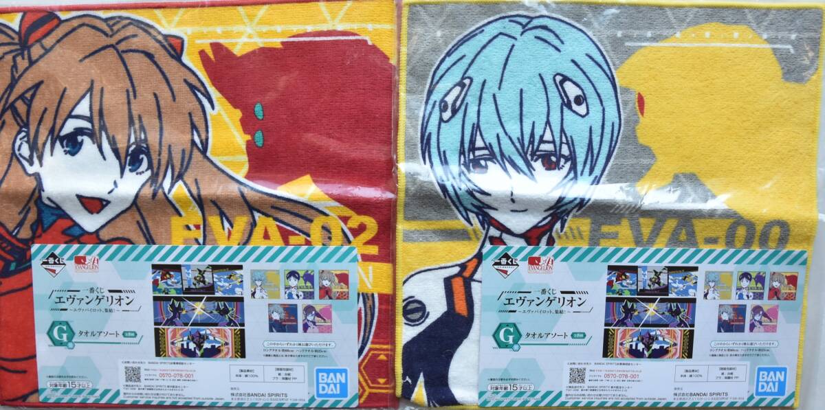 - 2枚セット 一番くじ エヴァンゲリオン エヴァパイロット、集結! G賞 タオル アスカ 綾波レイ