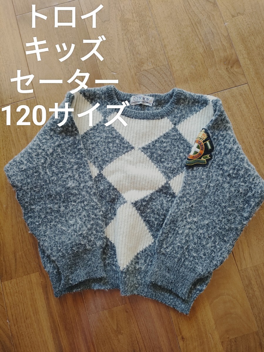 - トロイ キッズ アーガイル柄 国産品 ニット セーター グレー 120