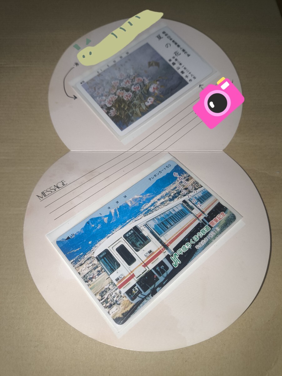 - 使用済 テレホンカード 平成ちくほう鉄道 開業記念 昭和63年県展入選作品 夏の花 筑豊 風景 わたせせいぞう 英彦山 香春岳 石炭記念公園 等