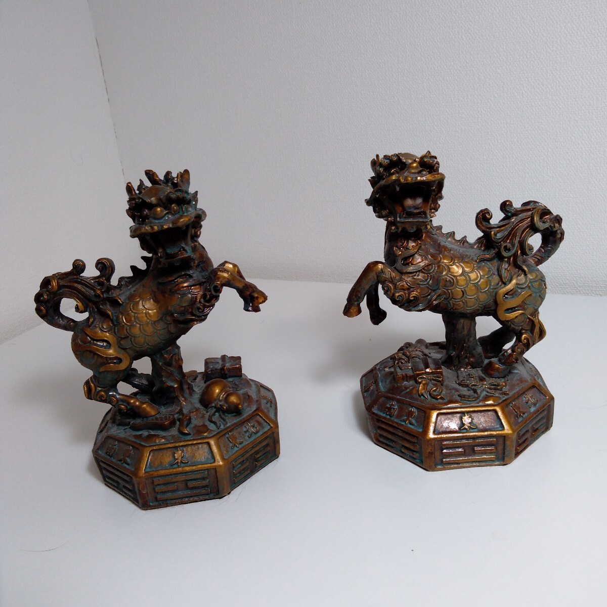 - 高さ約15cm 一対 幸運を呼ぶシーサーの置物 厄除け