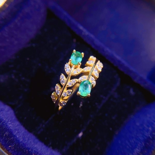 - 【証明書付き】女性用ナチュラルエメラルド,925スターリングシルバー、サイズ調節可能、最初の入札者様は開始価格で購入可能