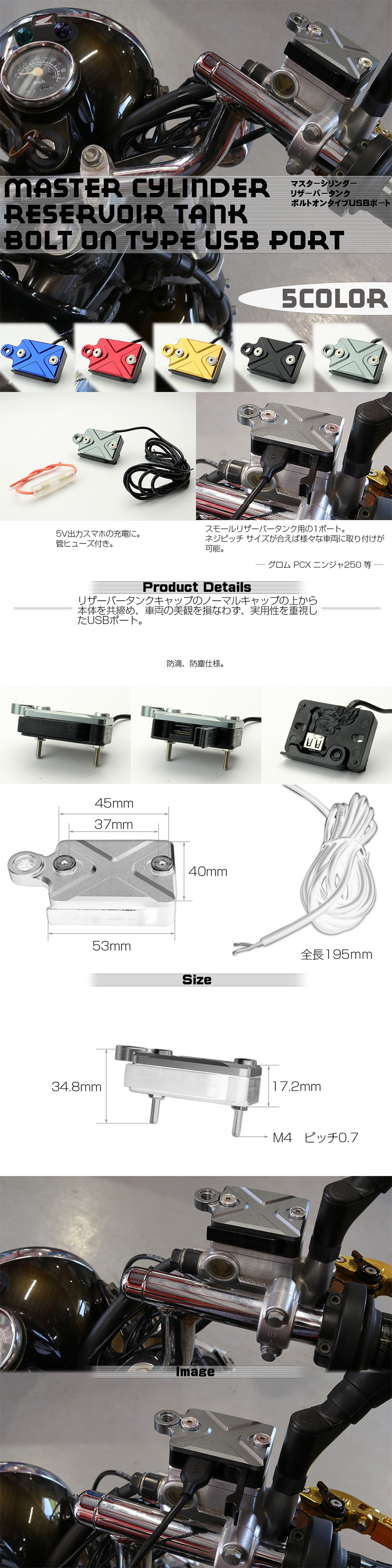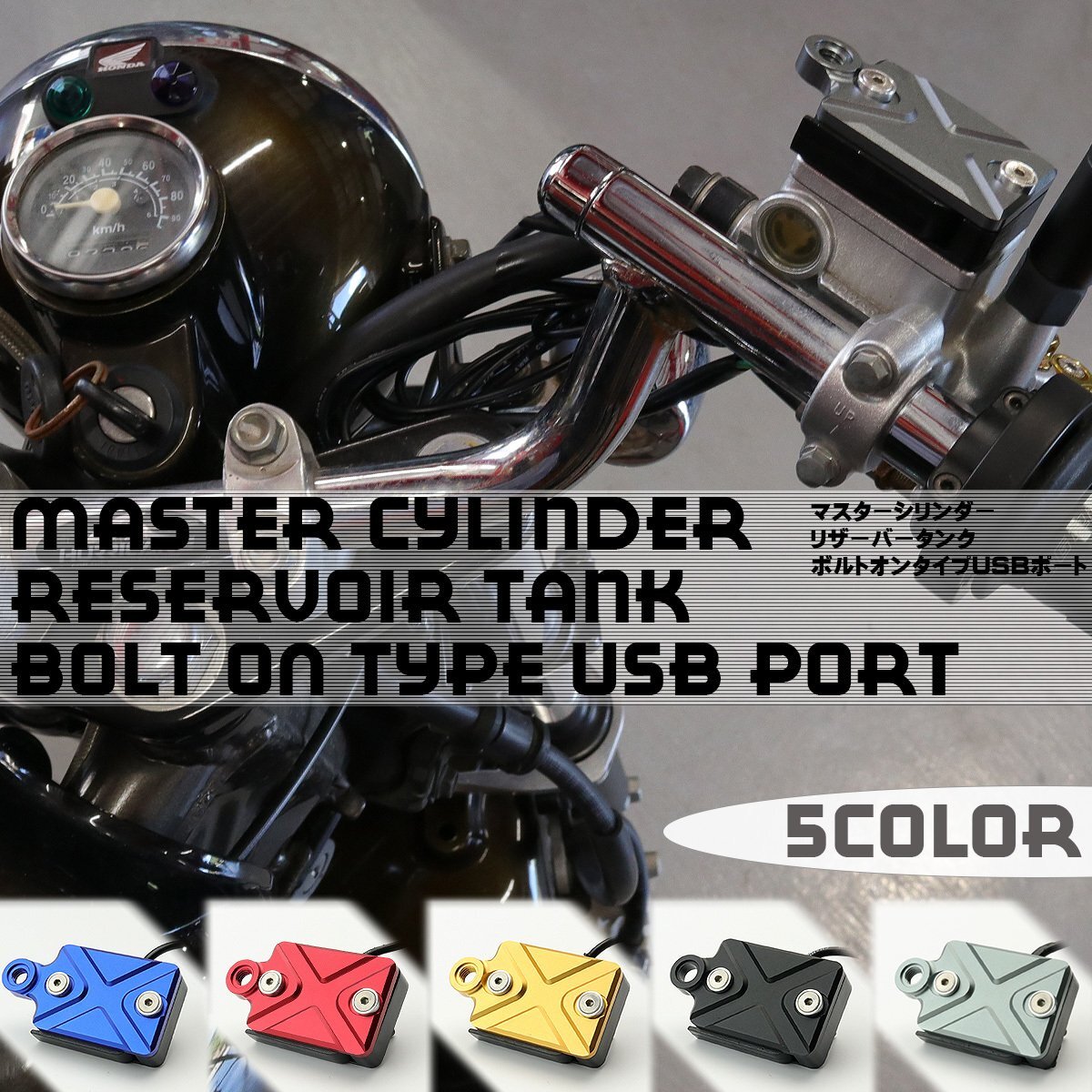 - 汎用 マスターシリンダー リザーバータンク キャップ ボルトオン タイプ USBポート 1ポート スマホの充電に ダークシルバー S-748-DS