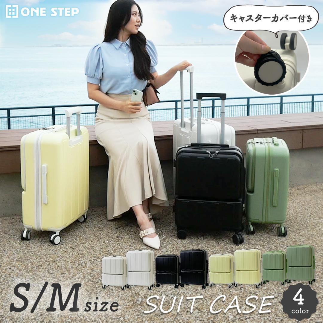 > 2180スーツケース キャリーケース 機内持込 USB挿し口付き フロントオープンカバー キャリーバッグ 軽量 静音 2泊3日 グリーン Mサイズ