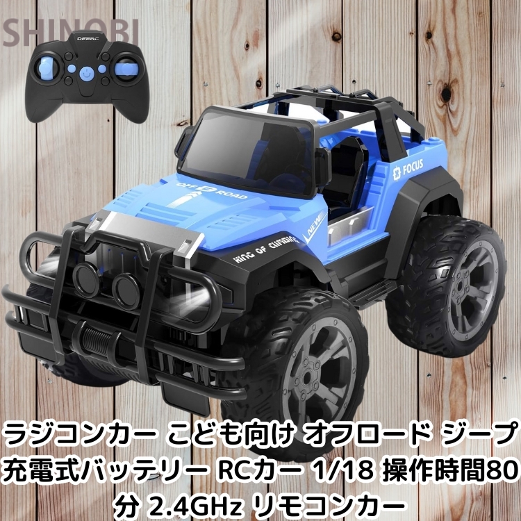 > ラジコンカー こども向け オフロード ジープ 充電式バッテリー RCカー 1/18 操作時間約80分 2.4GHz リモコンカー PVC製タイヤ