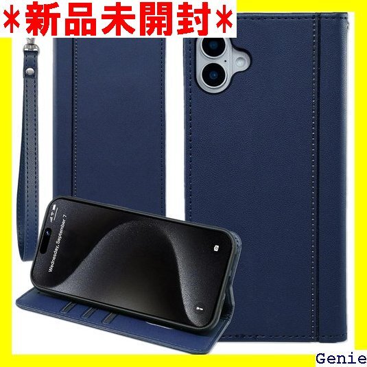- iPhone 16 ケース 手帳型 用 アイフォン16 マグネット ストラップ カード スマホケース ネイビー 365