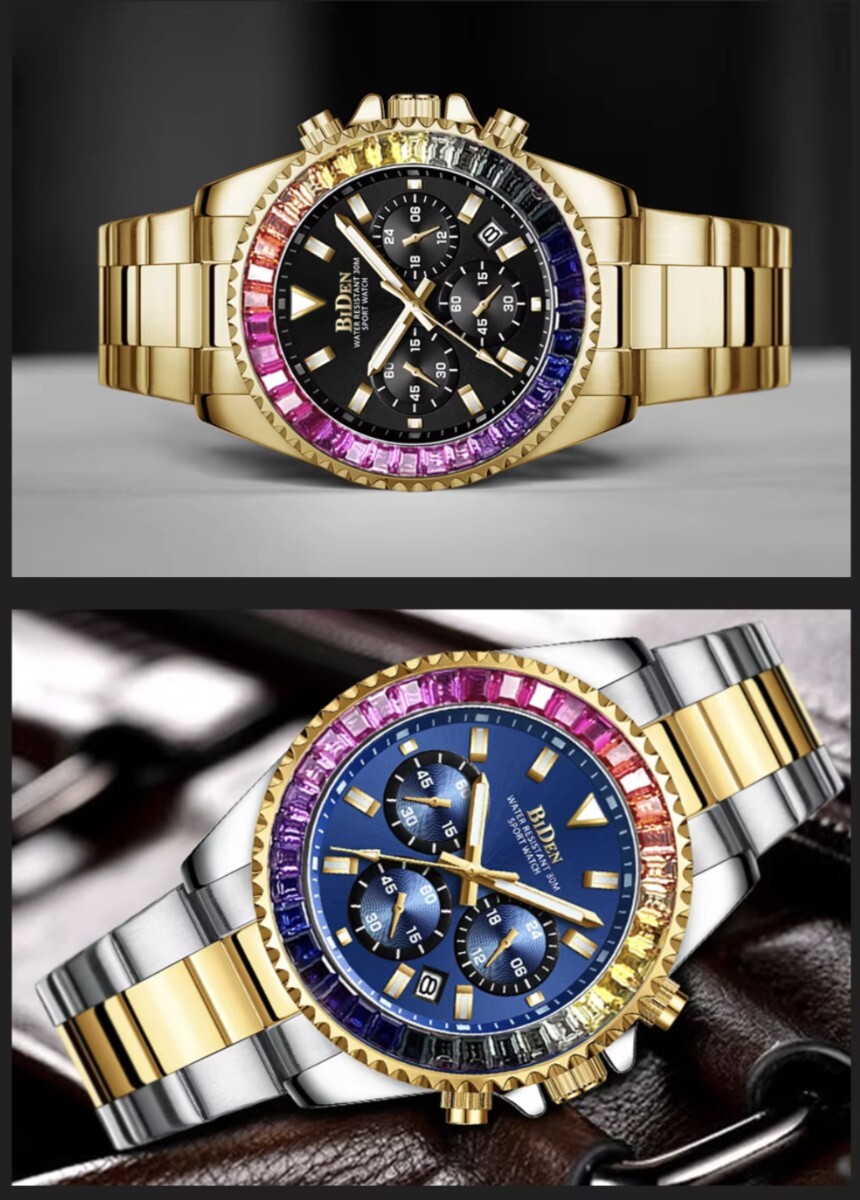 - 腕時計 新品 未使用 ウォッチ クォーツ メンズ レディース アナログ クロノグラフ 日付 セレブ ステンレス 防水 発光 c4689