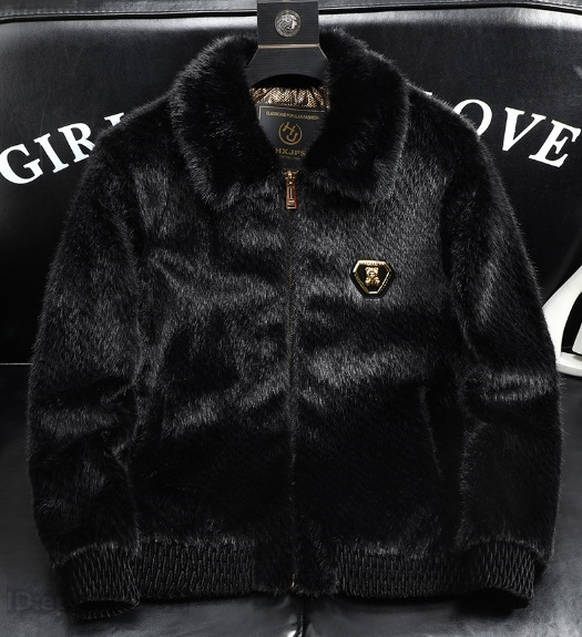 - ファージャケット♪新品 上質 メンズ バイクウェア ファーコート 折襟 厚手 毛皮 フェイクファー 紳士 ブルゾン サイズ選択可 黒/3XLサイズ