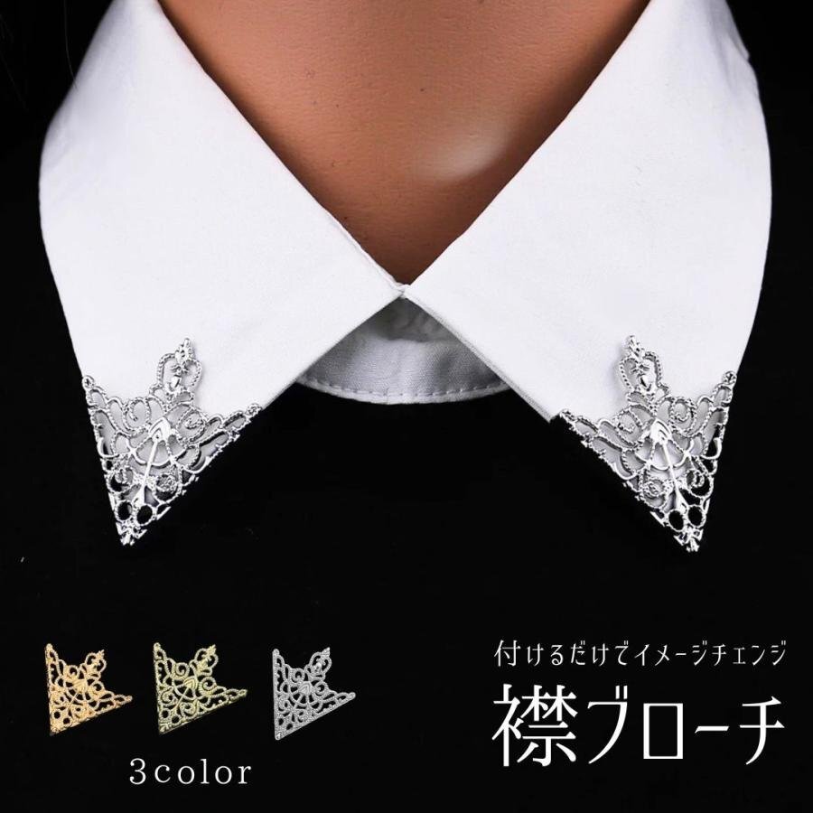 - 【3カラーから選択】【※購入後メッセージ下さい】襟ピン ブローチ 左右セット 装飾ピン 全3カラー トライアングル貴族 シャツブローチ