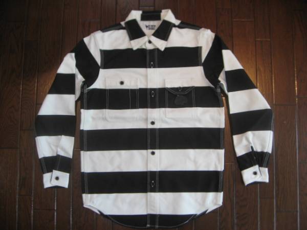 - 囚人風 ボーダー シャツ 白 黒 M 検索 ビンテージ スタイル 30s 40s プリズナー バイカー
