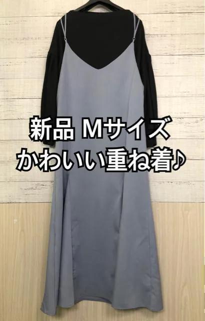- 新品☆M♪黒系♪ニット×サックス系♪キャミワンピの重ね着☆y584
