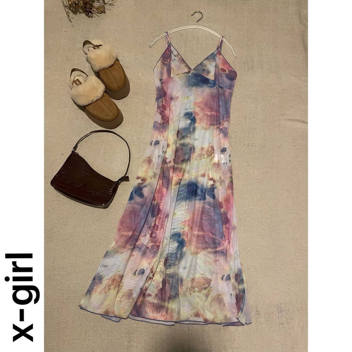 - エックスガール ワンピース シアー タイダイキャミドレス マキシワンピ 未使用 美品 レディース ノースリーブ サイズ2 スリット