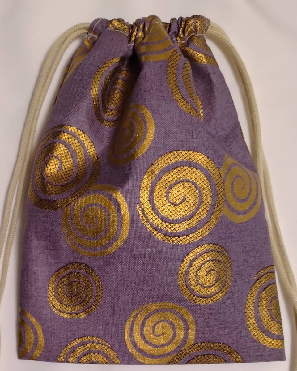 - 巾着袋■ラスト!金彩うずまき 紫【約よこ14cm×たて19cm】