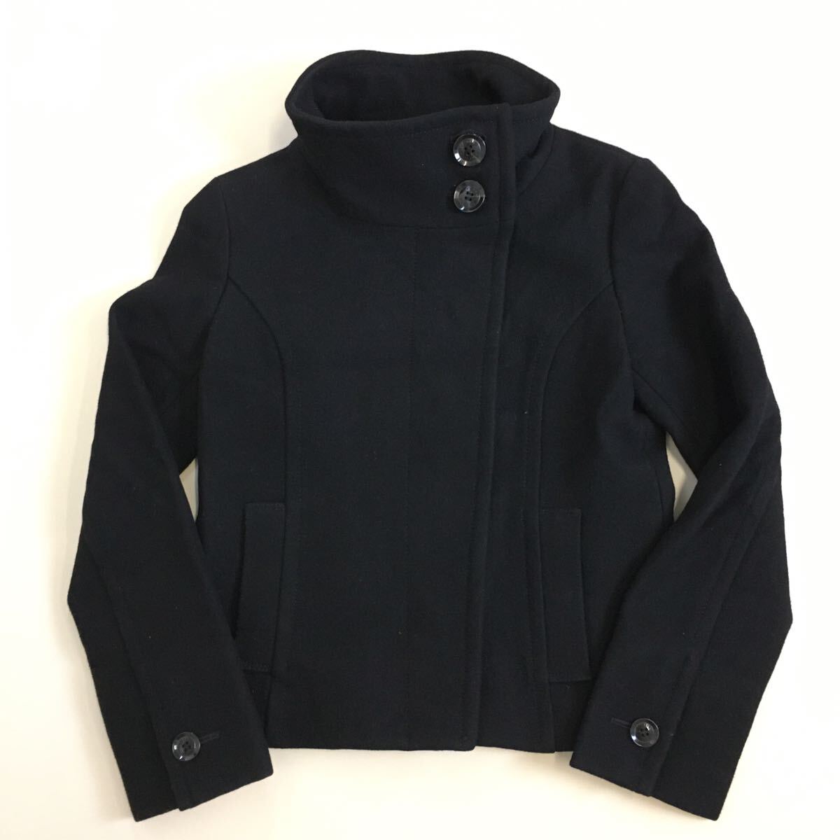 - ★ Le souk ハイネック ショートコート 黒 サイズ38 ◆ メルトンウール ジャケット ルスーク ◆W8 CいA6G-05