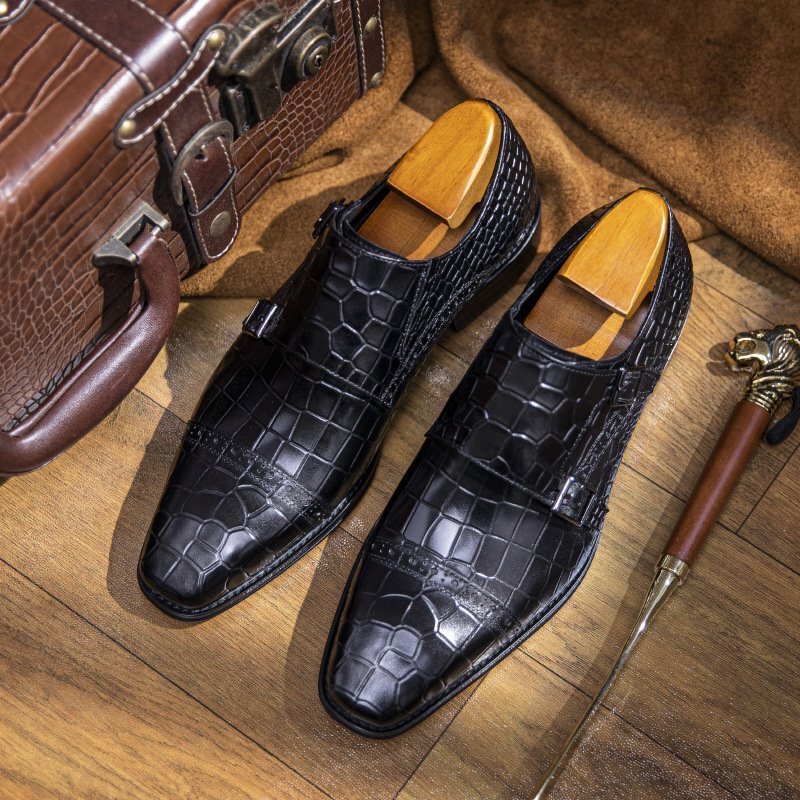 - 高級 高品質本革 希少 手塗仕上げ 型押し ビジネスシューズ 手作り 牛革 メンズ レザーシューズ 24.5cm ~27cm 黒