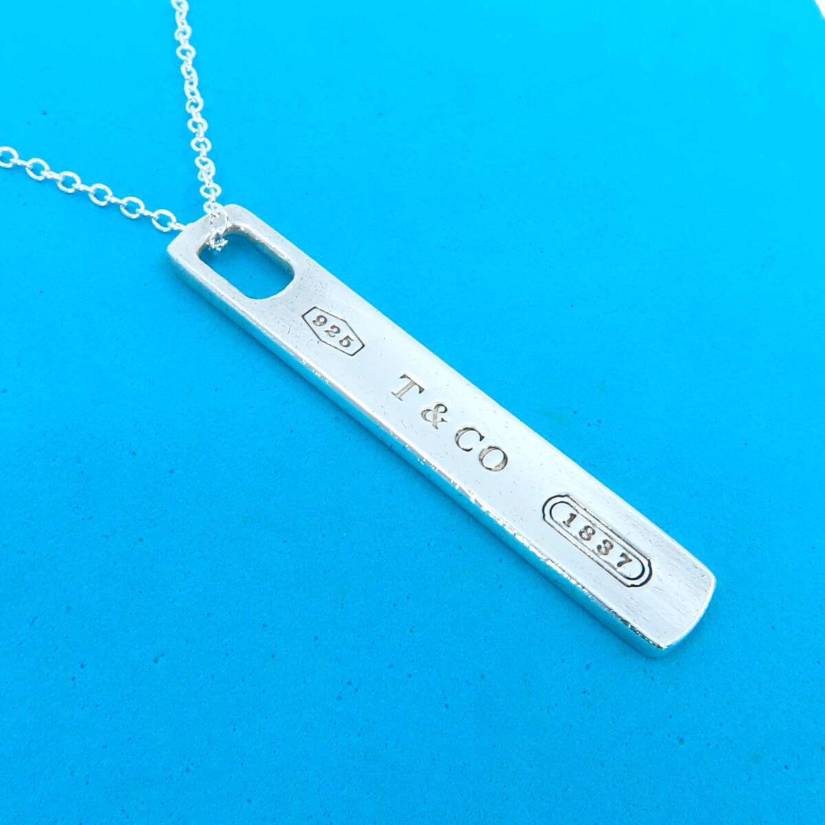 > 希少 Tiffany&Co. ティファニー 1837 ナロー バー シルバー ネックレス SV AG925 プレート ET310