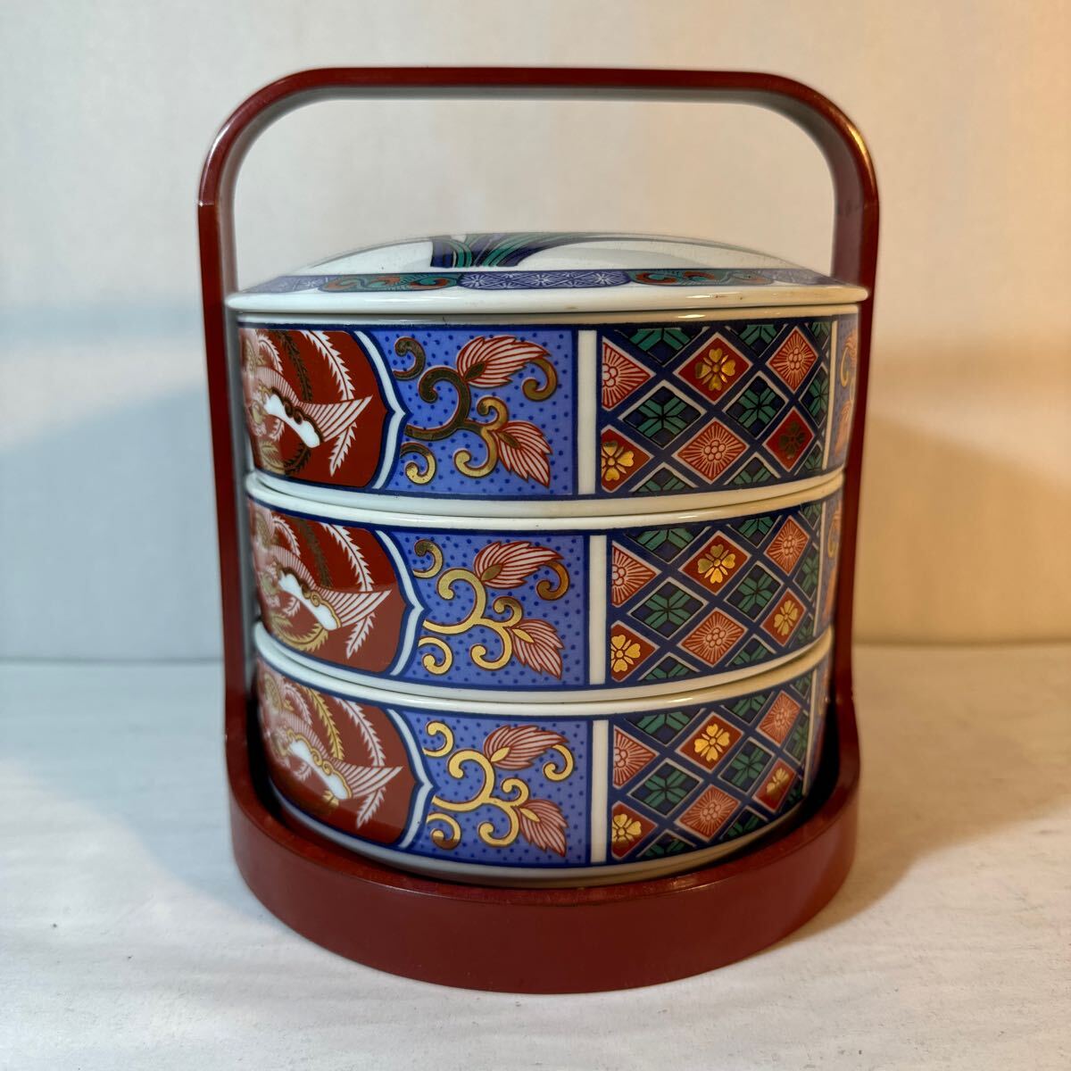 - 柴田陶器 3段 陶箱 手堤三段重ね 和食器 中皿 丸皿 キッチン 料理 長期保管品 C1 R71015s