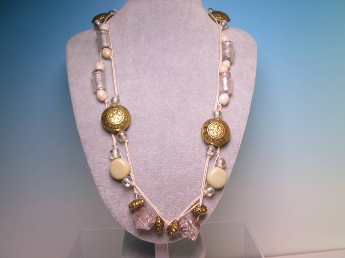 - ☆銀色吹きガラス/ゴールドカラーの超ロングネックレス 126cm