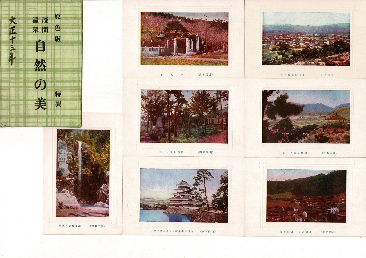 - *原色版 浅間温泉 自然の美 特製 絵葉書7枚 タトウ付 タトウに「大正十三年」の書込み 下浅間/上浅間/浅間公園/祠/松本城 RPS06424SM14