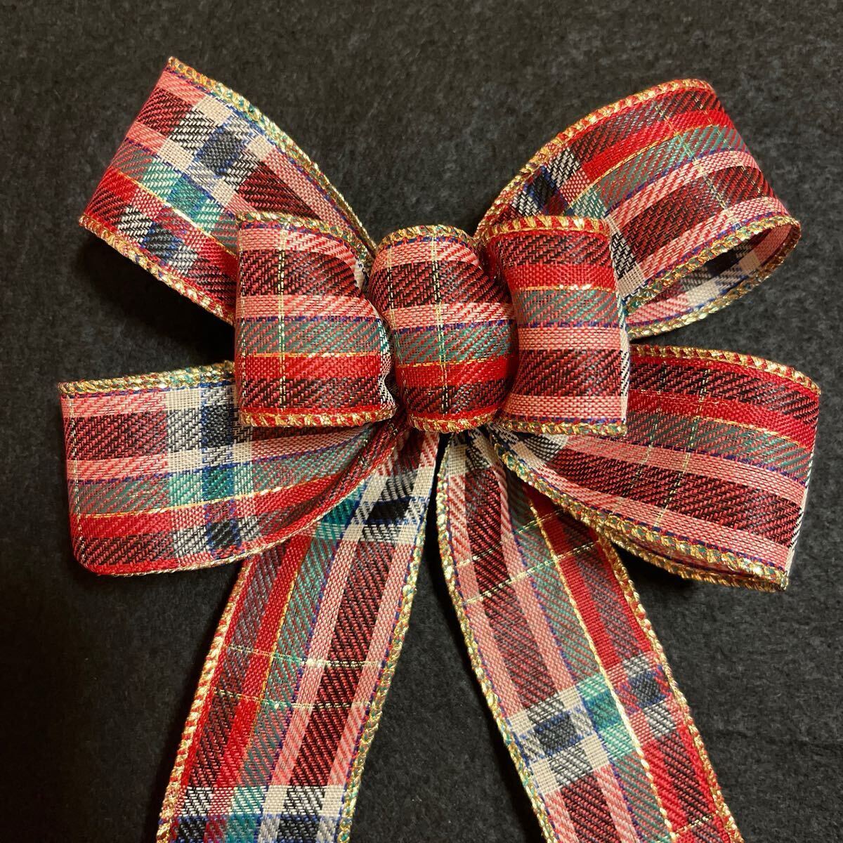 - 3.クリスマスリース用リボン ゴールドエッジ クリスマスチェック柄リボン ハンドメイド