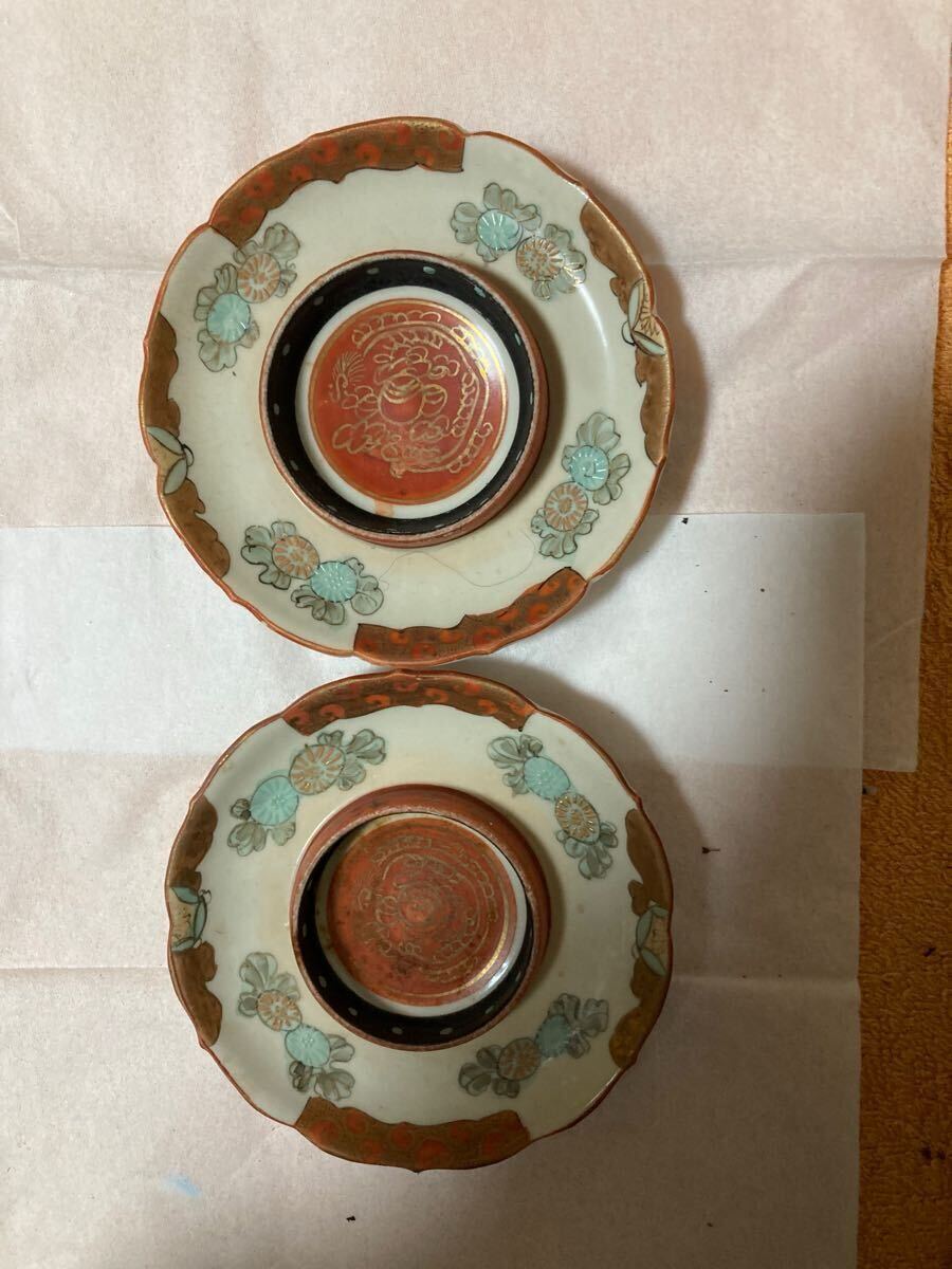 - アンティーク?骨董品?九谷焼? 色絵?染付?小皿?2個セット?汚れありです。
