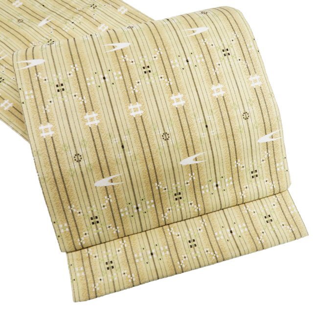 > 袋帯 中古 リサイクル 正絹 カジュアル 仕立て上がり 六通 花織風 花織模様 絣模様 蒸栗色 多色 きもの北條 A1114-15