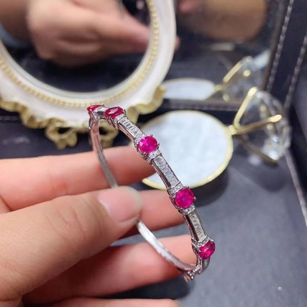- 【証明書付き】女性用925スターリングシルバーの天然ルビーブレスレット、 4×5mm、最初の入札者様は開始価格で購入可能