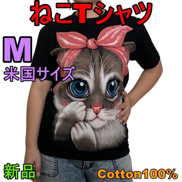 > 猫 半袖 Tシャツ (D02 M) 光る おもしろ ねこ バック プリント キャット アニマル シャツ