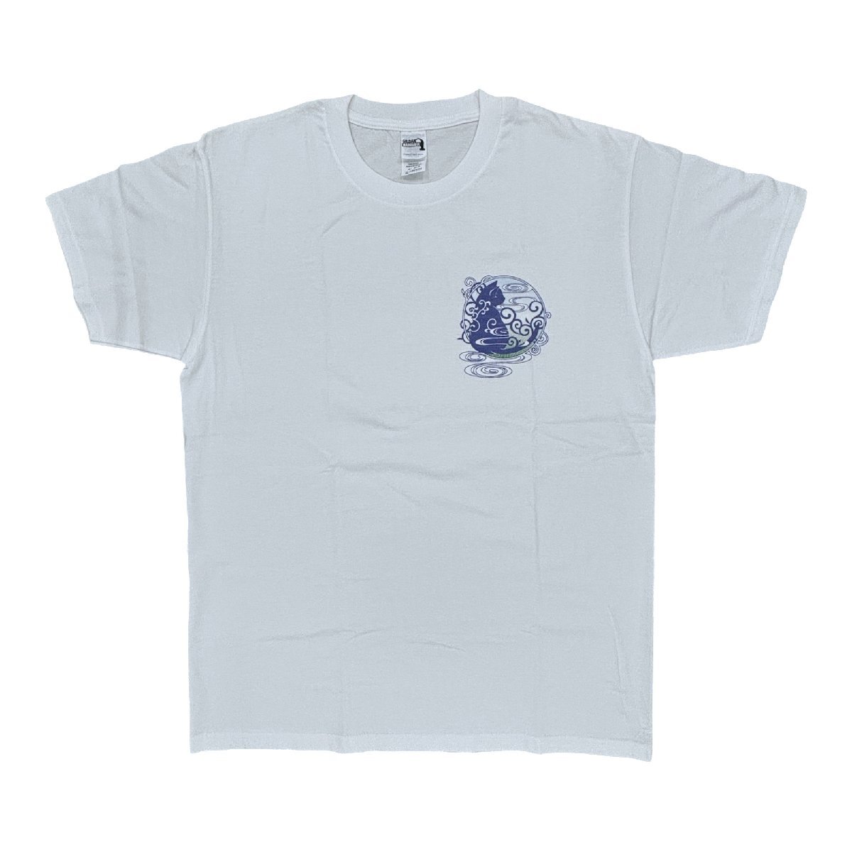 > [江戸てん]1点もの Tシャツ 6.0オンス 和柄 メンズ 胸に柄 唐草猫と流水 (背面は柄無し) 白 2L(XL)