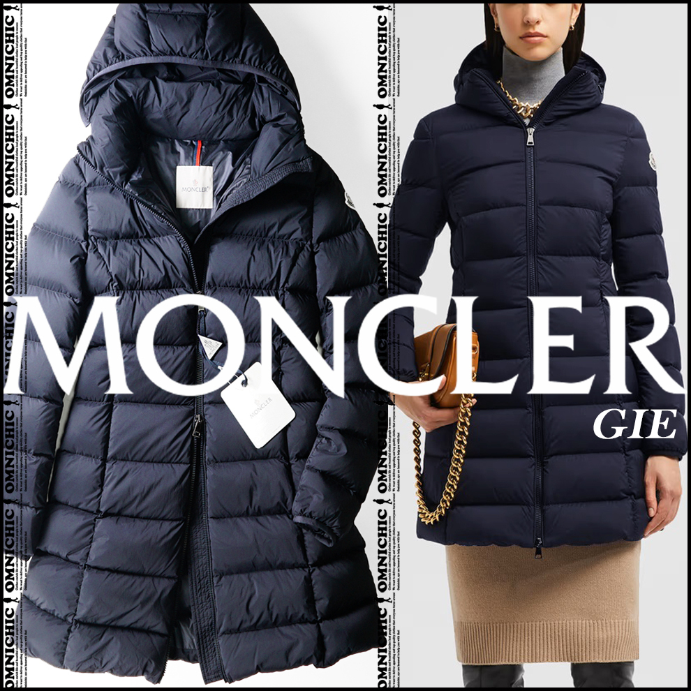 > 人気モデルGIE■国内正規品/新品【MONCLER】モンクレールワッペンロゴ高級感抜群ナイトブルーミドルダウンコートジャケット0/S/フード脱着