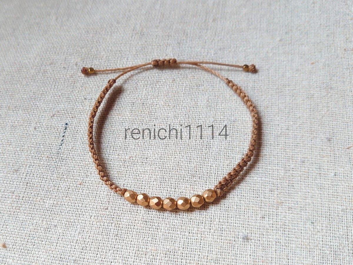 - 大人ブレスレット☆ブラウン&ゴールドビーズ☆チェコビーズ☆ワックスコード