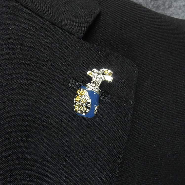 - ラペルピン メンズ スワロフスキー ゴルフバッグ Golf 銀×青 ブローチ メンズ用ブローチ ピンブローチ メール便可 ACC21-2501A
