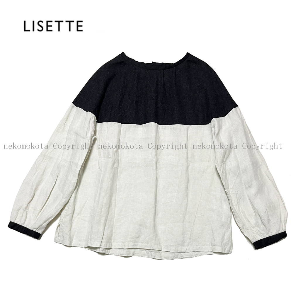 > 美品 リゼッタ【カリマ】ヨーク 切替 リネン×ウールのバイカラーブラウス 38 パイピング シャツ Lisette LB-22H109