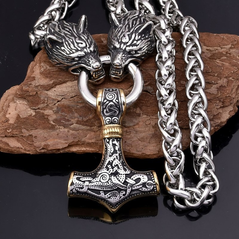 - ウルフモチーフ コンビカラー ネックレス 095 カジュアル ホスト ヤクザ ヤンキー オラオラ チンピラ メンズ アクセサリー ファッション