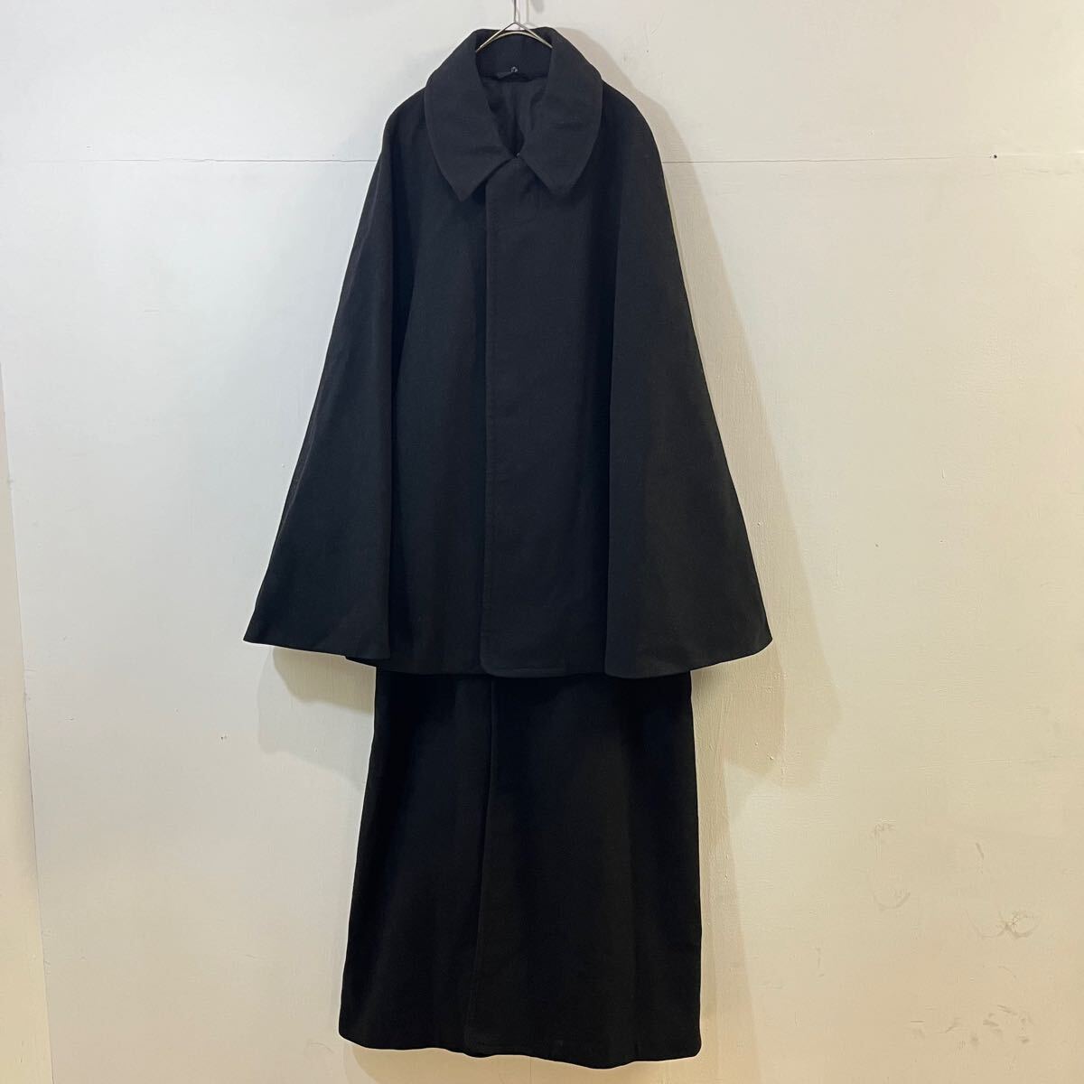 - VINTAGE トンビコート インバネスコート 外套 大正ロマン ウールメルトン ポンチョコート マント ロングコート 黒【送料一律/同梱可能】N