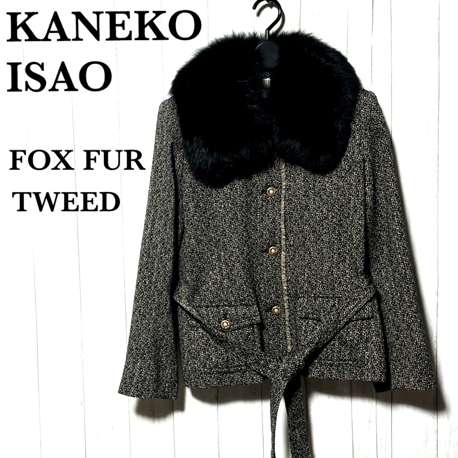 > カネコイサオ ツイードジャケット KANEKO ISAO フォックスファー&ベルト付属 装飾ボタン