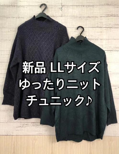- 新品☆LL♪紺×緑系♪ゆったりニットチュニック2枚ゆったり☆h554